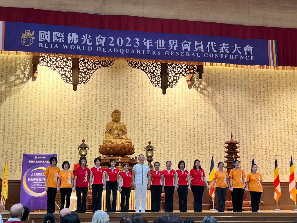 在課程的最後老師邀請他的多位資深學徒在優美奔放的音樂下為大家表演了大雁功,優雅輕柔的展翅和氣聚丹田迸發出的呼氣聲剛柔並濟,讓在場的佛光人無不陶醉。